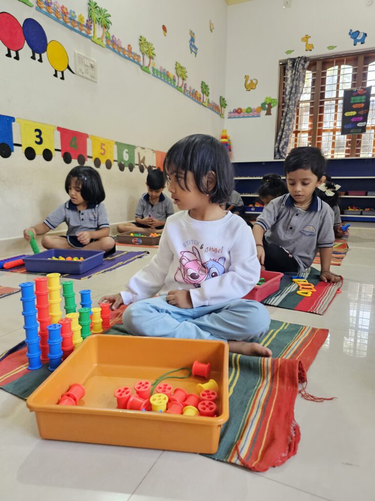 1 Cultural Studies Exploring geography, science, nature, arts, and human relationships. 2 Exercises of Practical Life Children develop fine motor skills, independence, and responsibility at young age 3 Sensorial Sensorial materials stimulate the five senses, which leads in ntellectual development. 4 Language Phonetics, storytelling, songs, poems, reading & writing through Montessori techniques.